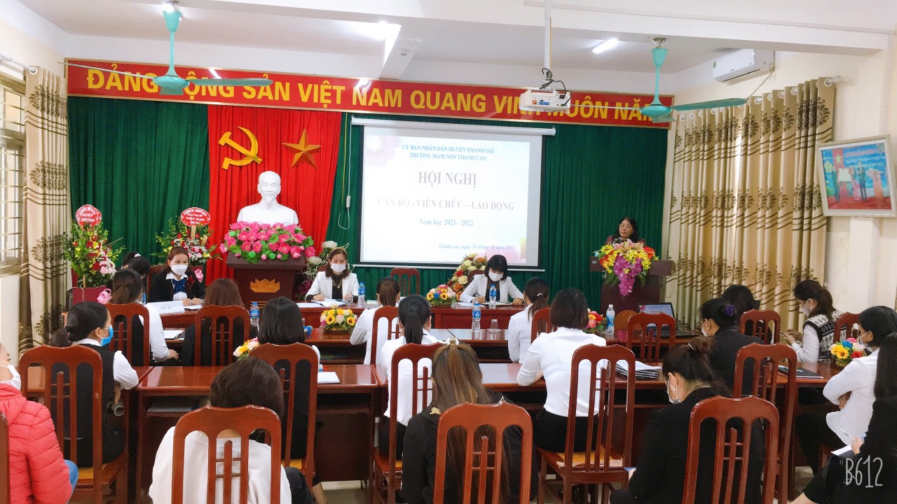- Ngày 19/10/2021 Trường mầm non Thanh Cao long trọng tổ chức Hội nghị Cán bộ, Viên chức, Lao động.  Để đảm bảo công tác phòng chống dịch hội nghị chia làm 3 phòng kết nối Zoom. Kết thức hội nghị 100% tập thể nhà trường nhất trí cao với các Báo cáo, Quy chế chế mà đoàn chủ tịch trình bày.